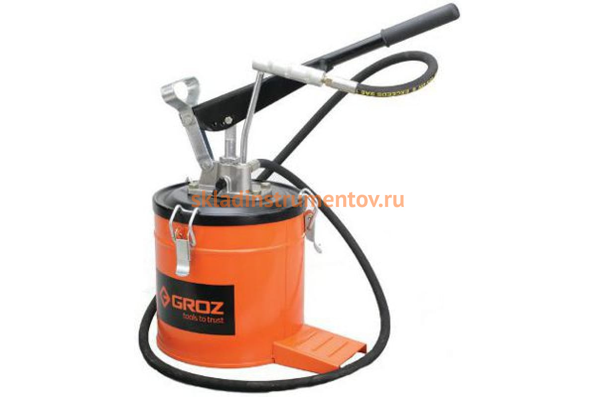 Ручной переносной нагнетатель смазки, 275 атм, емкость 6кг, 4-9гр/ход GROZ GR44280 - VGP-6A - это специализированное устройство для перекачки большого объема смазочных материалов под высоким давлением. Прибор активно применяется для работы в профессиональной сфере деятельности при техническом обслуживании автомобилей, сельскохозяйственной и строительной техники, а также судовых механизмов и пр.