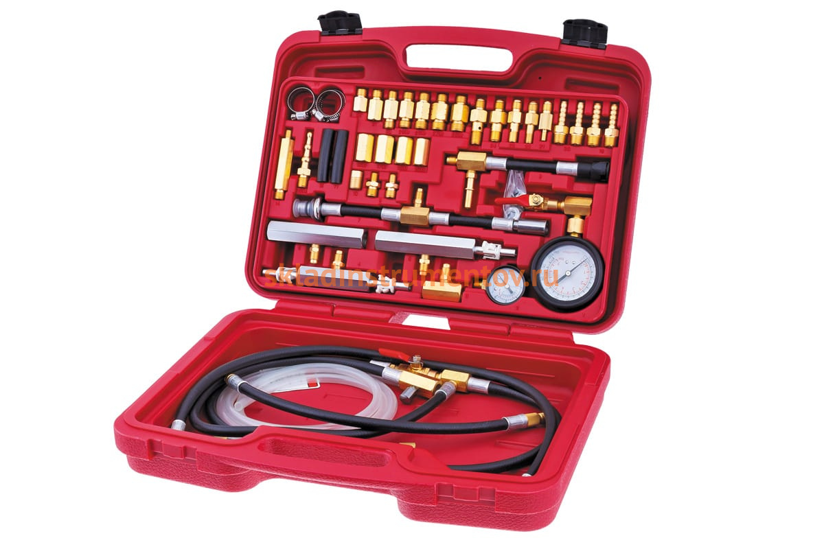 Комплект для проверки давления топлива Станкоимпорт KA-7042 подходит для профессионального использования. Он позволяет измерить давление в топливных магистралях. Для более удобной работы в наборе содержится 2 манометра, рассчитанных на давление 0-7 бар и 0-3.5 бар. Разнообразное количество адаптеров и переходников совместимо со многими известными марками автомобилей.