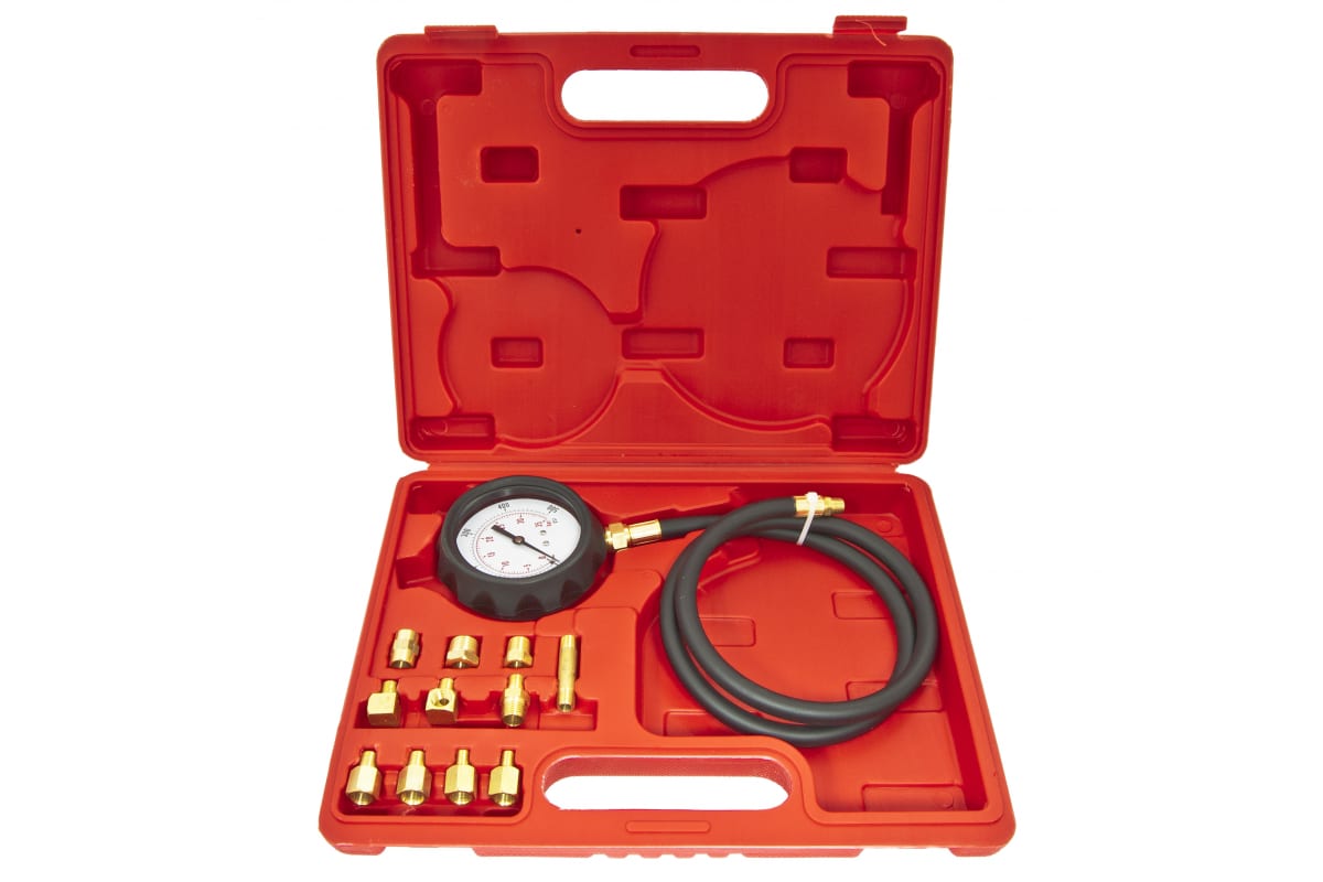 —Тестер давления масла в наборе с резьбовыми адаптерами 12 предметов, в кейсе ЭВРИКА ER-86311—