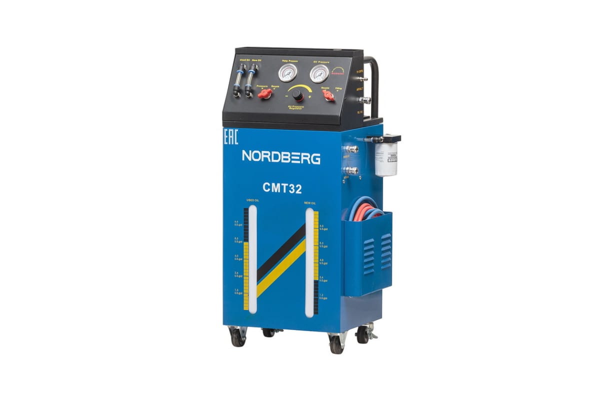 Установка для промывки и замены жидкости в АКПП NORDBERG CMT32 - универсальное оборудование, которое подходит для обслуживания любого типа автоматических коробок передач. Подвод воздуха осуществляется через штуцер 1/4" NPT. Для контроля давления в диапазоне от 0 до 7 бар на передней панели размещаются два манометра диаметром 70 мм и шагом 1 и 1/10 бар. Антикоррозийное покрытие корпуса увеличивает срок службы установки.