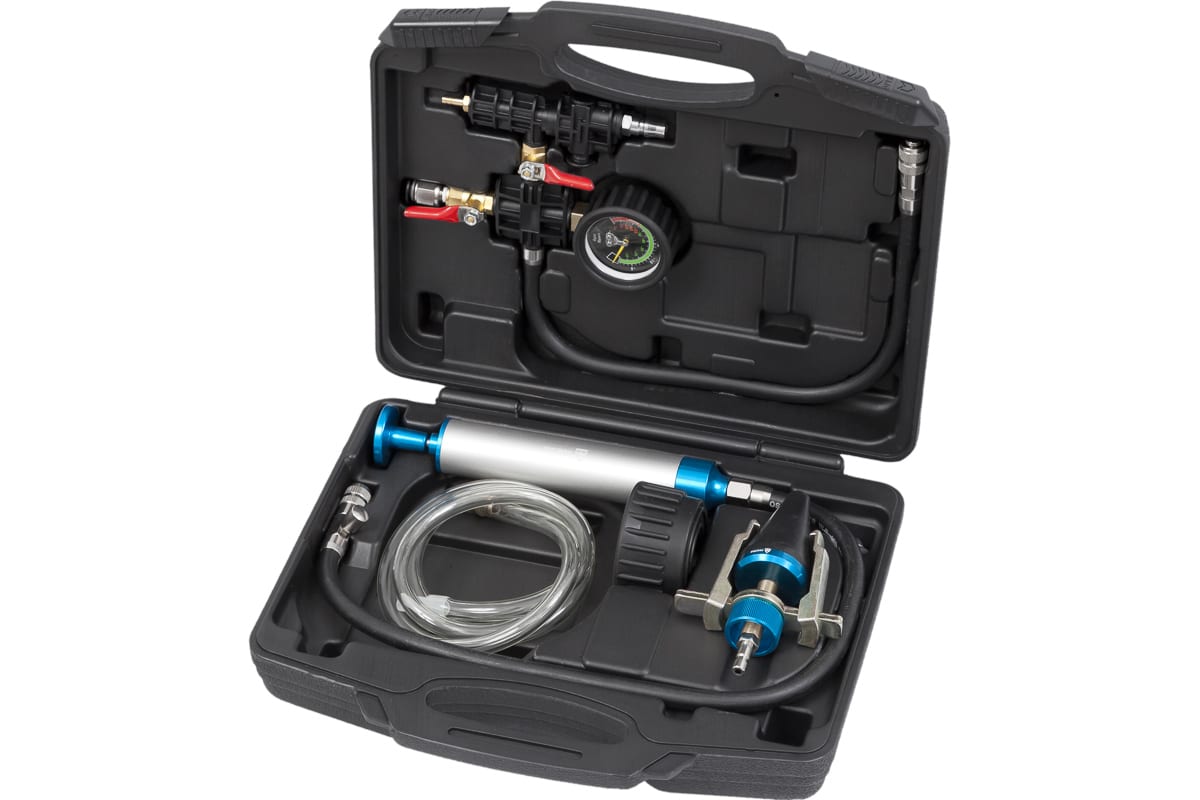 Универсальный набор для тестирования герметичности системы охлаждения 3 предмета МАСТАК 103-40003C подходит не только для быстрого и точного определения мест утечки хладагента, но и для его замены в двигателе. В комплект поставки входит специальный адаптер, предназначенный для горловин радиатора, а также для расширительного бачка. Диапазон применения переходника - от 40 до 75 мм, что позволяет использовать его для большинства существующих марок автомобилей.