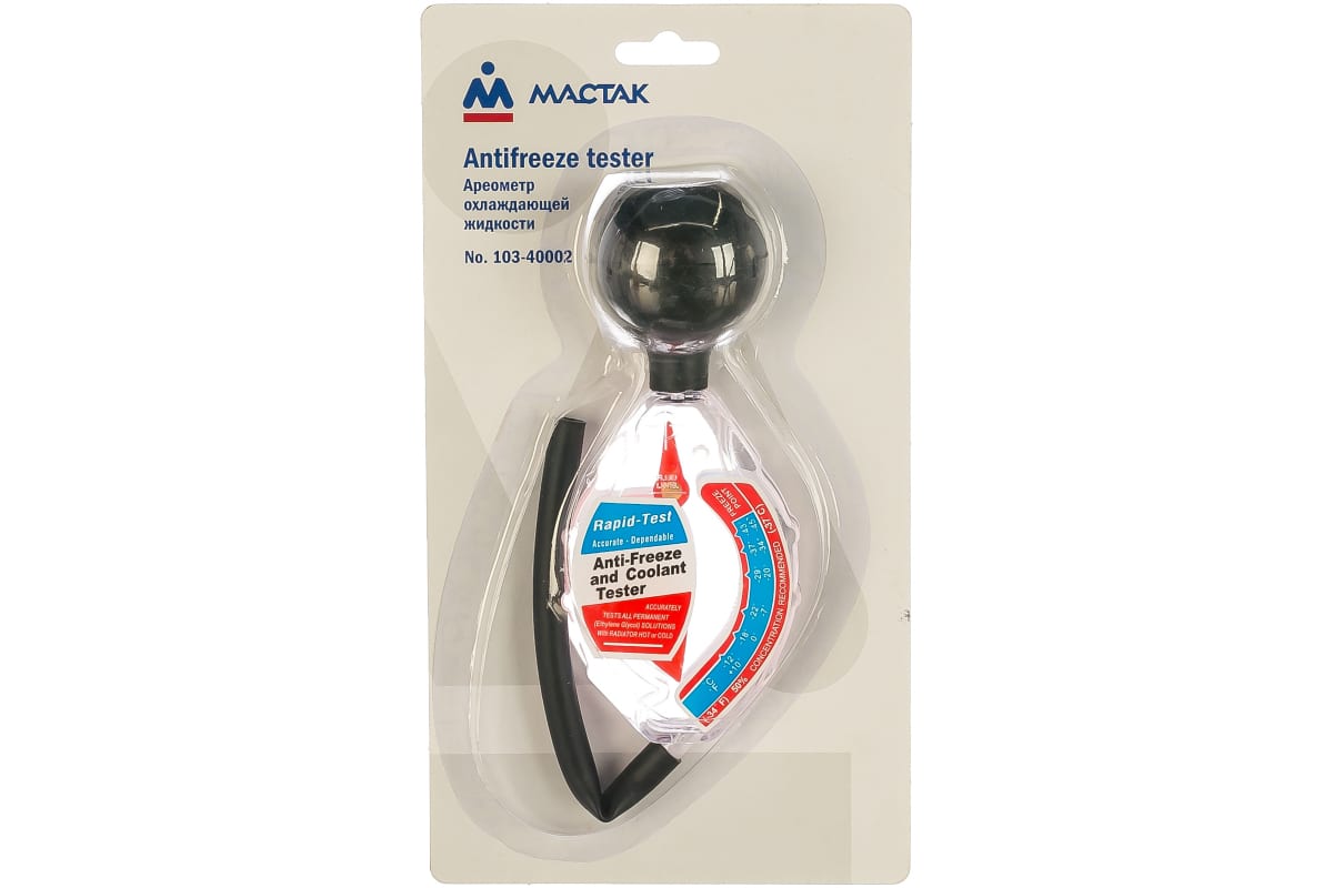 Ареометр охлаждающей жидкости МАСТАК 103-40002 используется при проверке температуры замерзания/кристаллизации антифриза. Используется на СТО и в домашних условиях. Поплавковый принцип действия оборудования позволяет с высокой точностью определить состояние жидкости за счет изменения плотности.