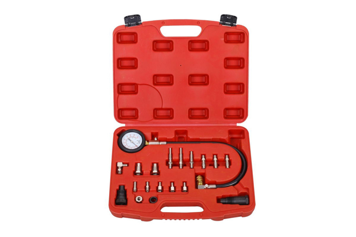 Компрессометр для дизельных ДВС с быстросъемными адаптерами, 0-1000PSI (0-70бар) ROSSVIK ST107 применяется для определения неисправности в системе подачи топлива.