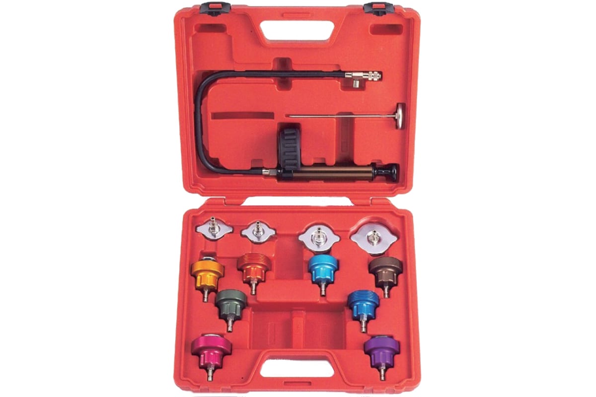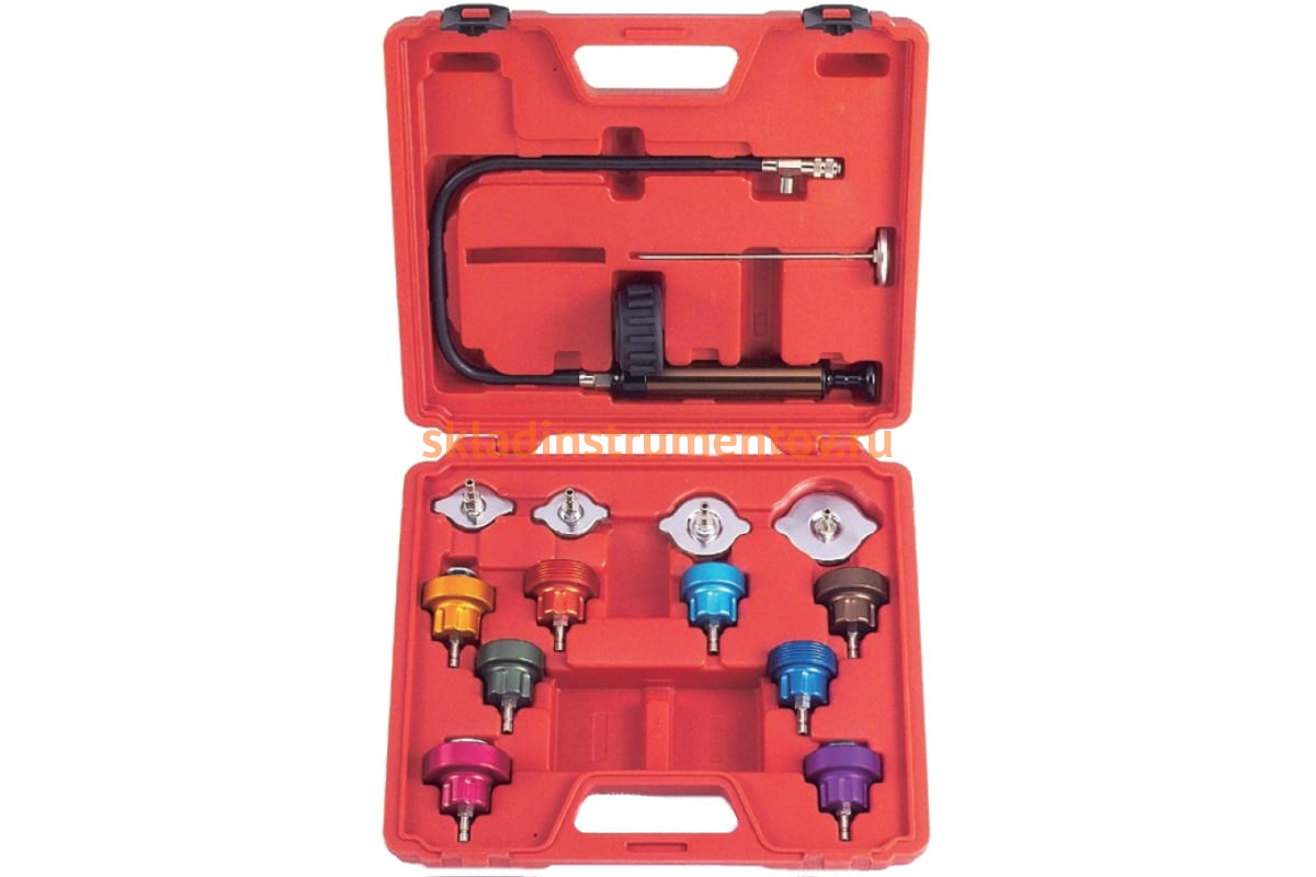 Тестер герметичности систем охлаждения двигателя 14шт FORCE 914G1 - автосервисное оборудование для диагностики различных автомобильных систем на герметичность. Данный комплект включает в себя широкий ассортимент адаптеров для обслуживания таких марок, как: GM (Cadillac), GM (BUICK), JEEP, PEUGEOT, SUBARU, CHRYSLER, ACURA, GM (Nova, Spectrum, Sprint), MITSUBISHI, NISSAN, MAZDA, TOYOTA, INFINITI, GEO, SUZUKI, ISUZU, HONDA, TOYOTA, CHRYSLER, ACURA, MERCEDES BENZ (ML-class), GM (achiva, skylark, gramd am-1992~2002), VOLVO, SAAB, STERLING, CITROEN, RENAULT, FLAT, ALFA, JEEP, VW (Vento, T4, Passat-1996, Golf, Beetle, Sharan), AUDI (A4, A6, A8), BMW 345, VW (PASSAT-1997~2002), FORD, INTERNATIONAL, Land ROVER, OPEL, JAGUAR, MERCEDES BENZ (C-class, E-class, S-class).