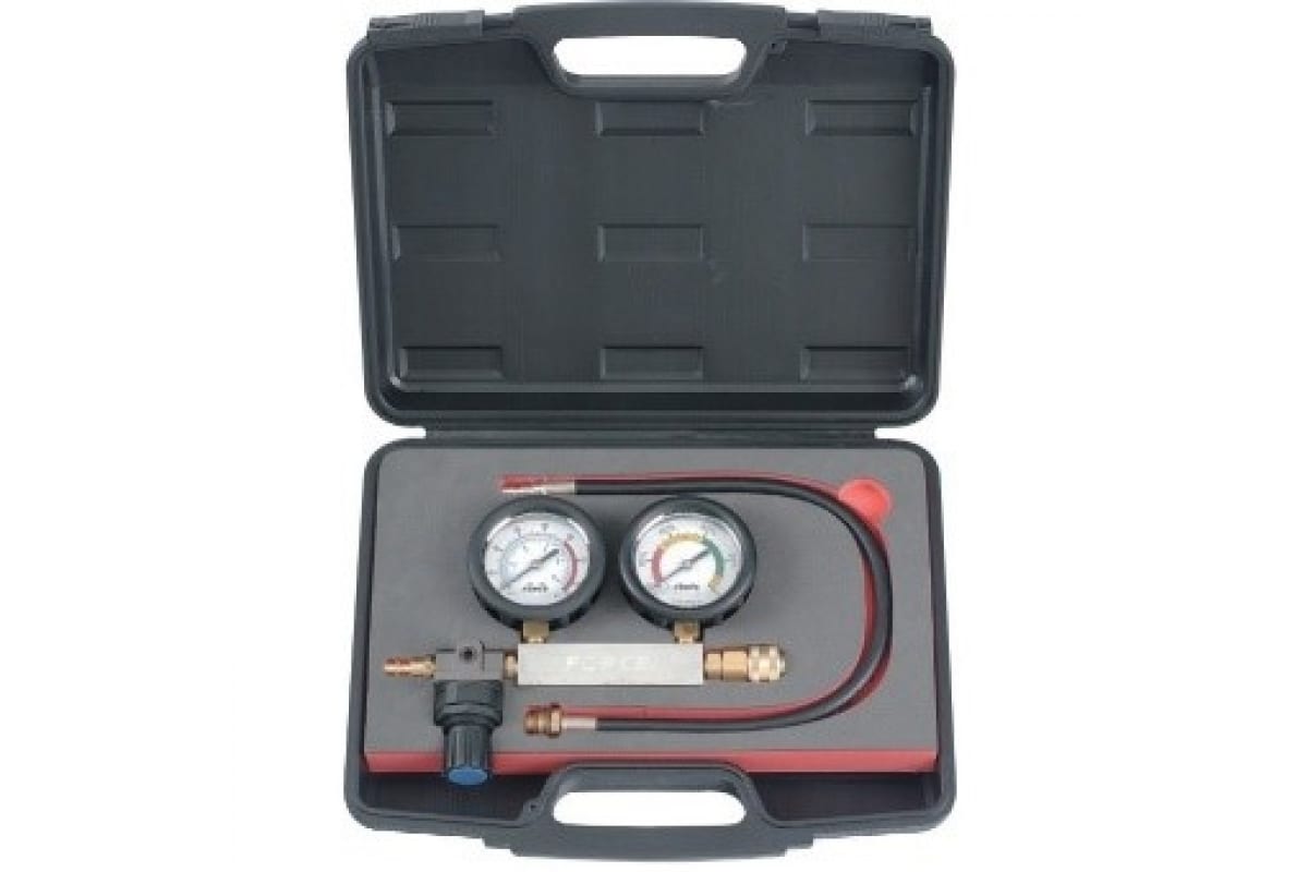 Тестер проверки герметичности цилиндров FORCE 902G3 находит применение в автомобильных мастерских для контроля компрессии. Встроенный манометр упрощает контроль давления в системе.