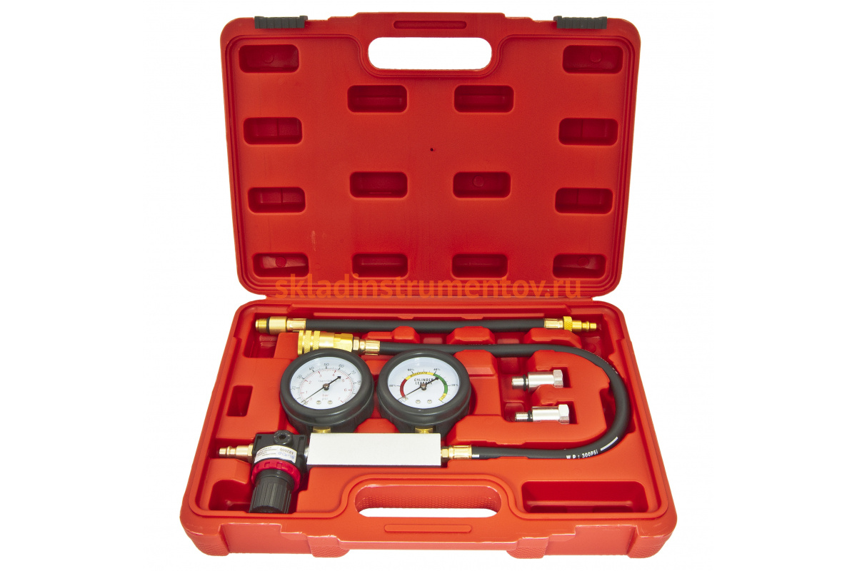 —Тестер утечки в цилиндрах в наборе с адаптерами 4 предмета, в кейсе ЭВРИКА ER-86316—