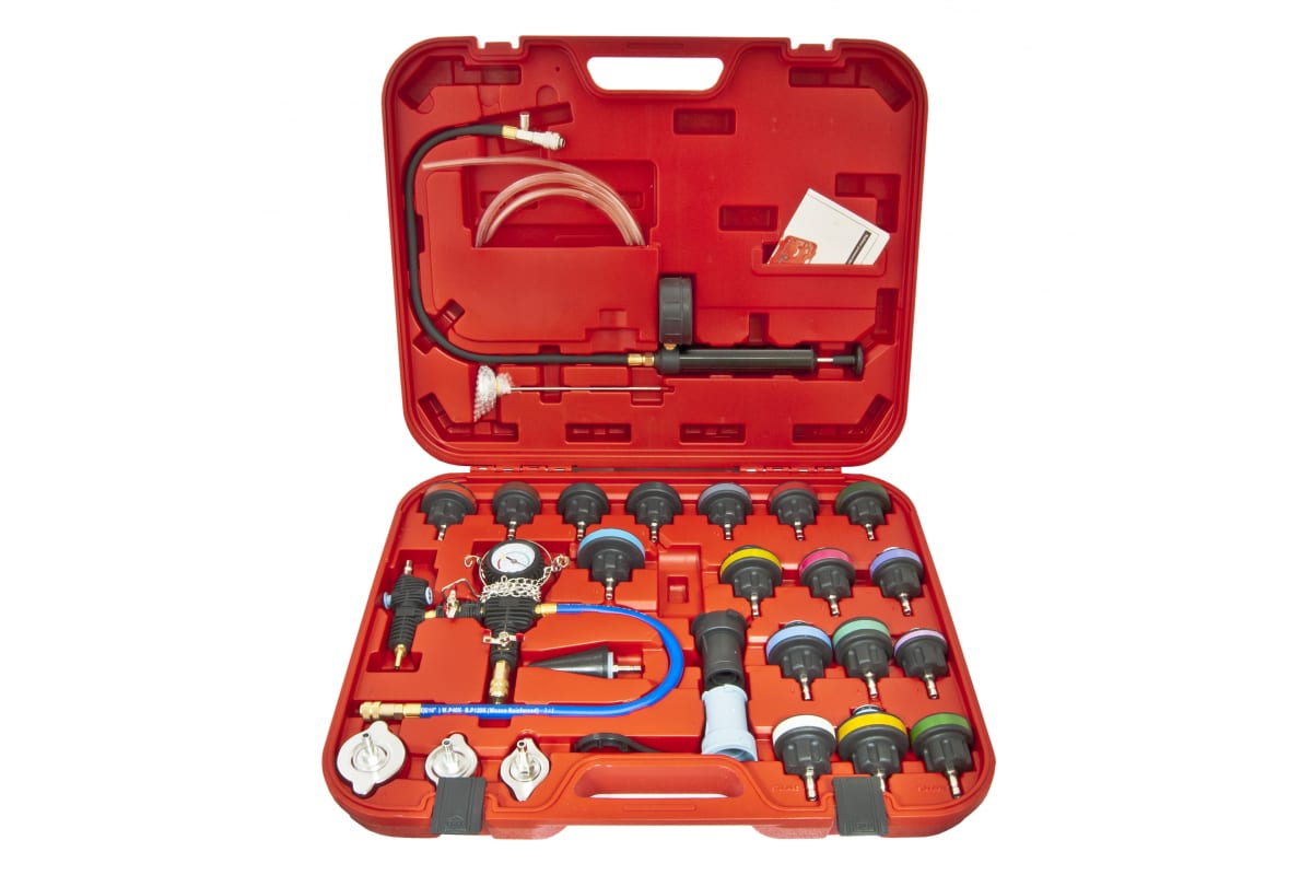 —Набор приспособлений для тестирования герметичности систем охлаждения ЭВРИКА 27 предметов, в кейсе ER-86715—