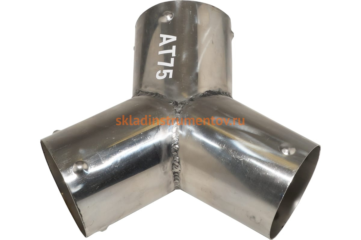 Y-образный металлический переходник для шланга D=75мм NORDBERG AT75 представляет собой разветвитель на два потока.