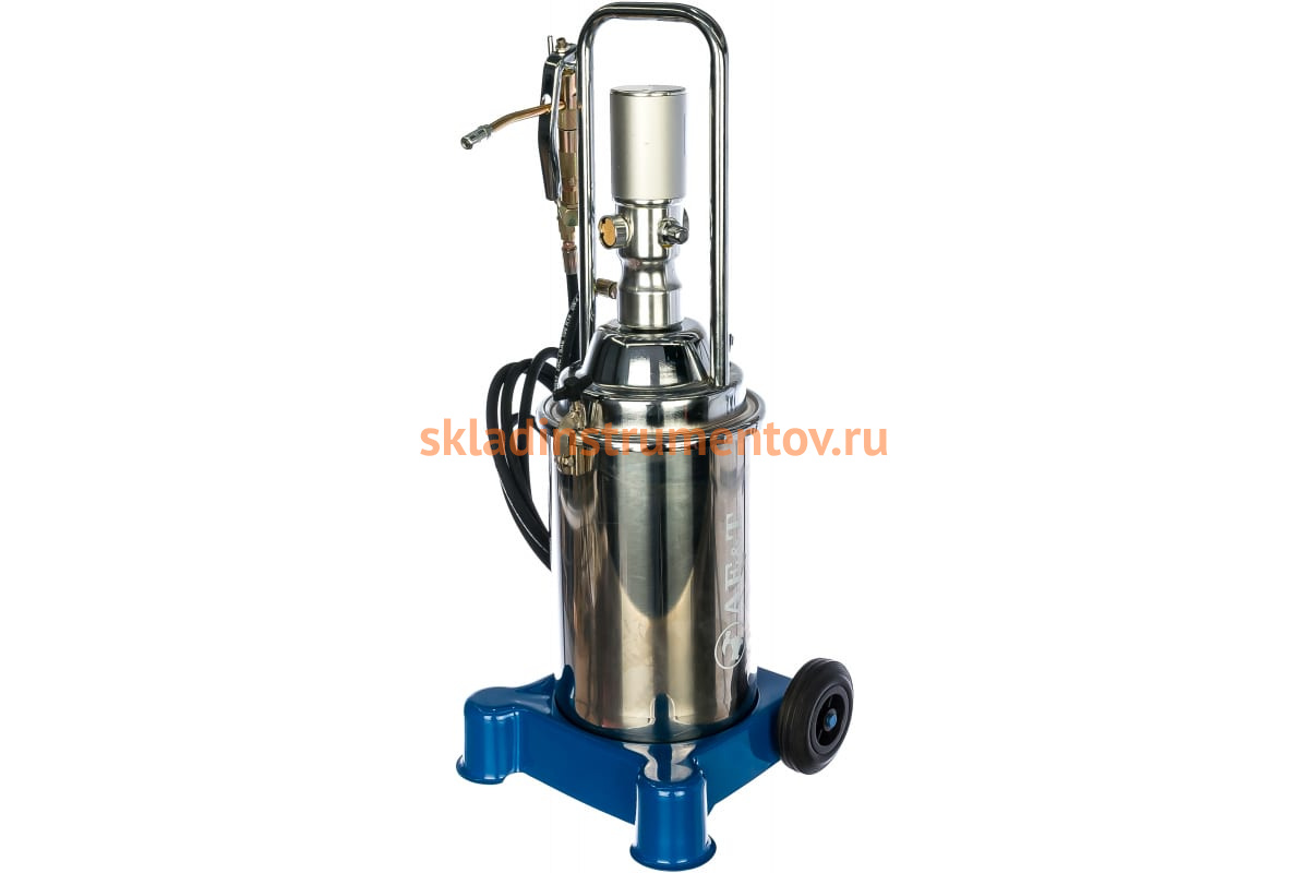 Пневматический нагнетатель густой смазки AE&T HG-68213S служит для быстрой раздачи солидола на промышленных предприятиях и в автосервисах. Применение данного агрегата значительно снижает трудозатраты рабочих, что увеличивает их производительность. Модель оснащена вместительным баком (12 кг), выполненным из нержавеющей стали и надежно защищенного от образования коррозии. Отличается высокой скоростью подачи рабочей жидкости - до 0.85 л/мин.