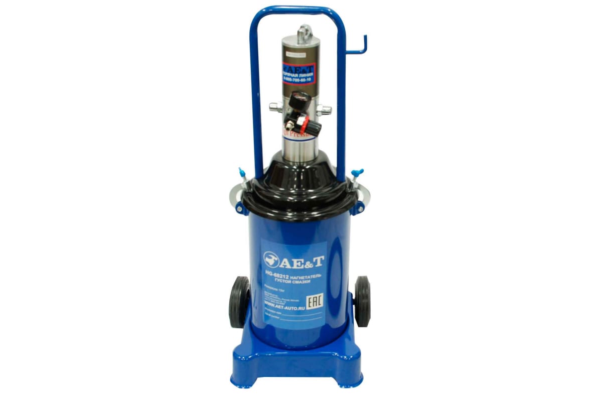 Пневматический нагнетатель густой смазки AE&T HG-68212 представляет собой эффективное оборудование для подачи смазки со скоростью до 0.85 л/мин. Конструкция оснащается колесами, что обеспечивает простую транспортировку.