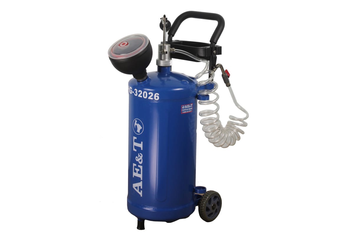 Ручная маслораздаточная установка AE&T HG-32026 служит для заправки двигателя автомобиля. Наличие пистолета, ручного насоса и воронки позволяет использовать модель даже не имея специальных знаний. Широкая эргономичная ручка и большие мягкие колеса обеспечивают легкость перемещения и маневренность конструкции. Резервуар емкостью 30 литров изготавливается из толстого железа с ребрами жесткости. Конструкцией модели предусматривается наличие лотка для инструмента.