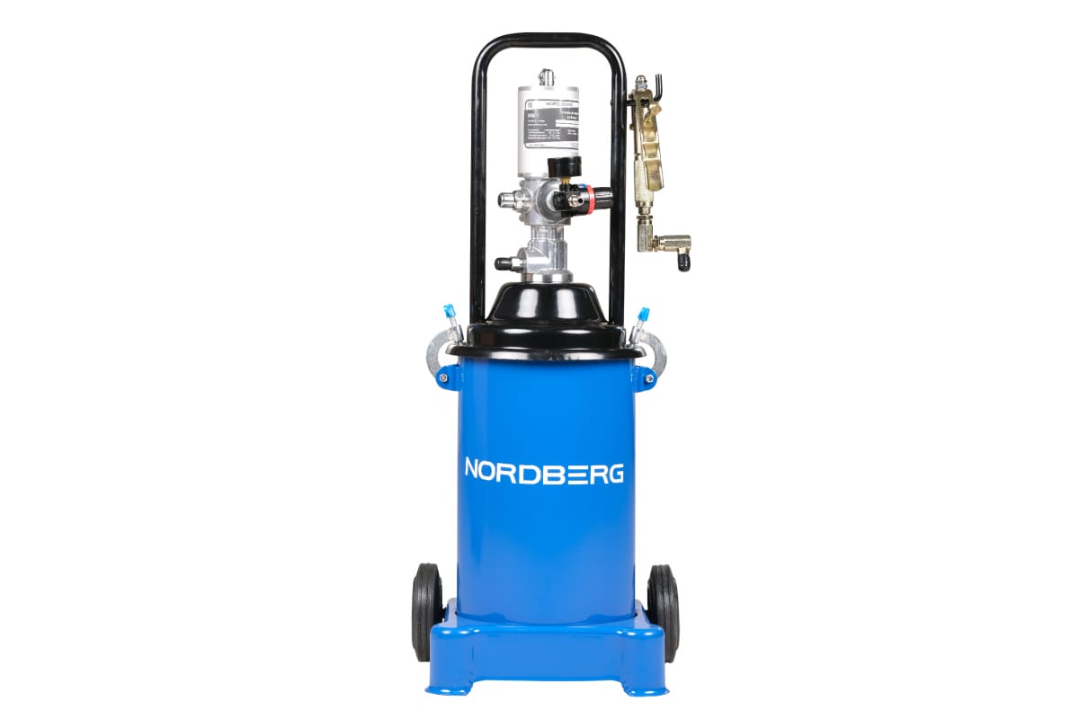 Пневматическая установка для раздачи густой смазки NORDBERG с баком 12 л NO5012 отлично подходит для использования в ремонтных мастерских. Система работает от сжатого воздуха, не искрит. Безвредна для окружающей среды. Для удобства в транспортировке установка оснащена поворотными колесами и эргономичной рукояткой.