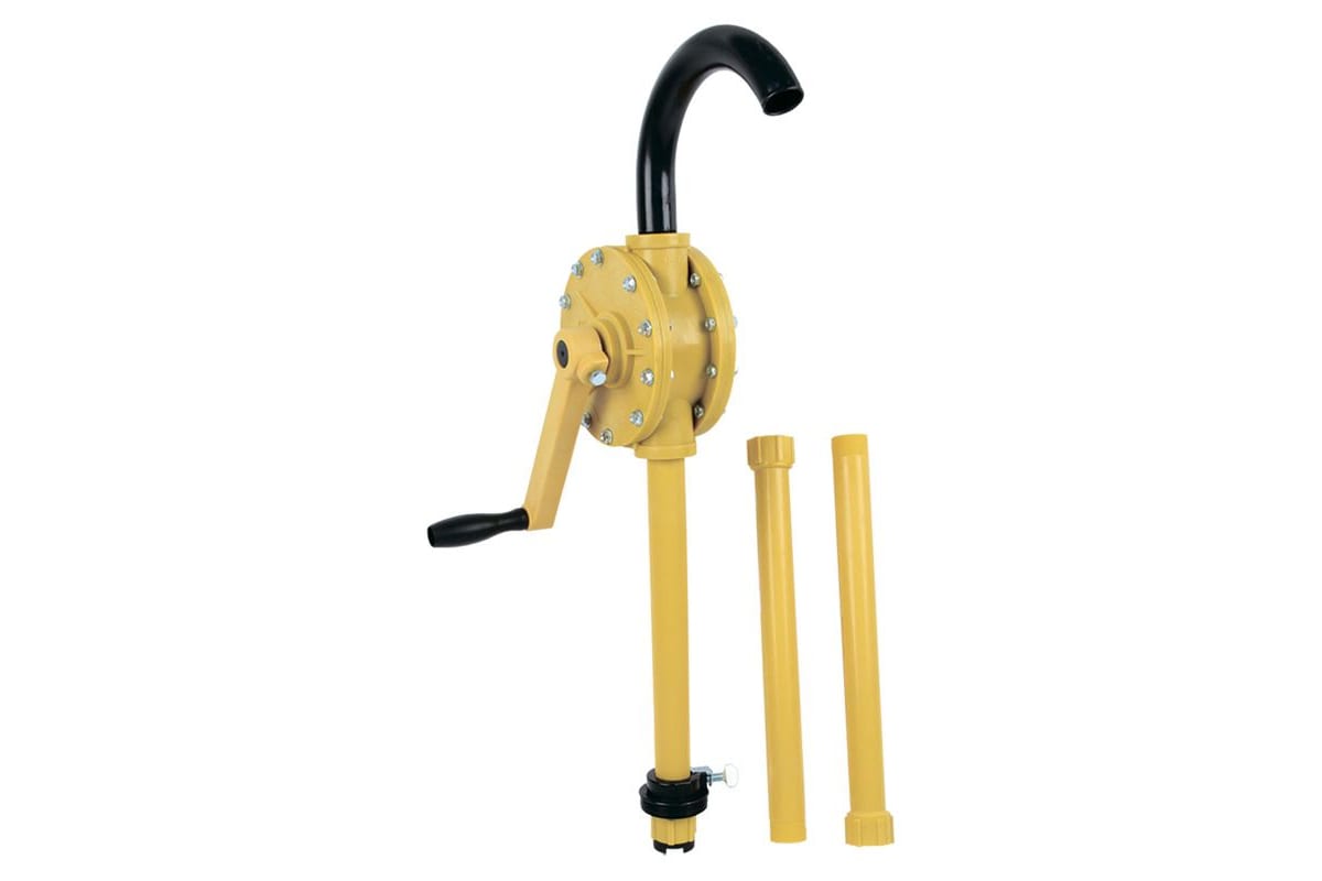Ручной роторный насос для жидкостей AIST 67361570 00-00010354 подходит для перекачки масла, дизеля, СОЖ, керосина, ГСМ, кислоты, щелочи, воды, алкоголя и материалов на нефтяной основе. Корпус насоса и крыльчатка выполнены из полипропилена, все уплотнения – из нитрил-бутадиенового каучука, а крепежные болты – из стали. Для предотвращения попадания грязи в насос заборник оснащен сетчатым фильтром.