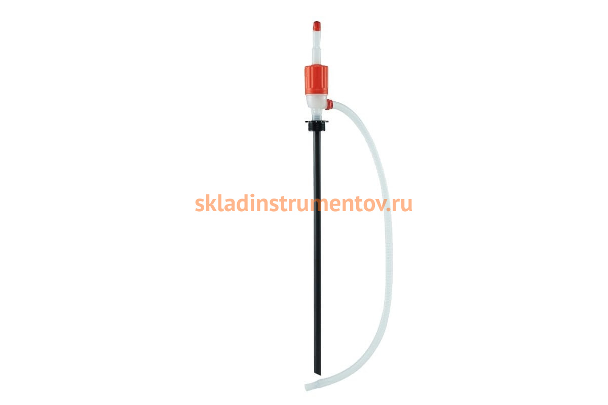 Изделие оснащено держателем для крепления сливного шланга. Ручная конструкция помпы позволяет выполнять работу быстро и просто.