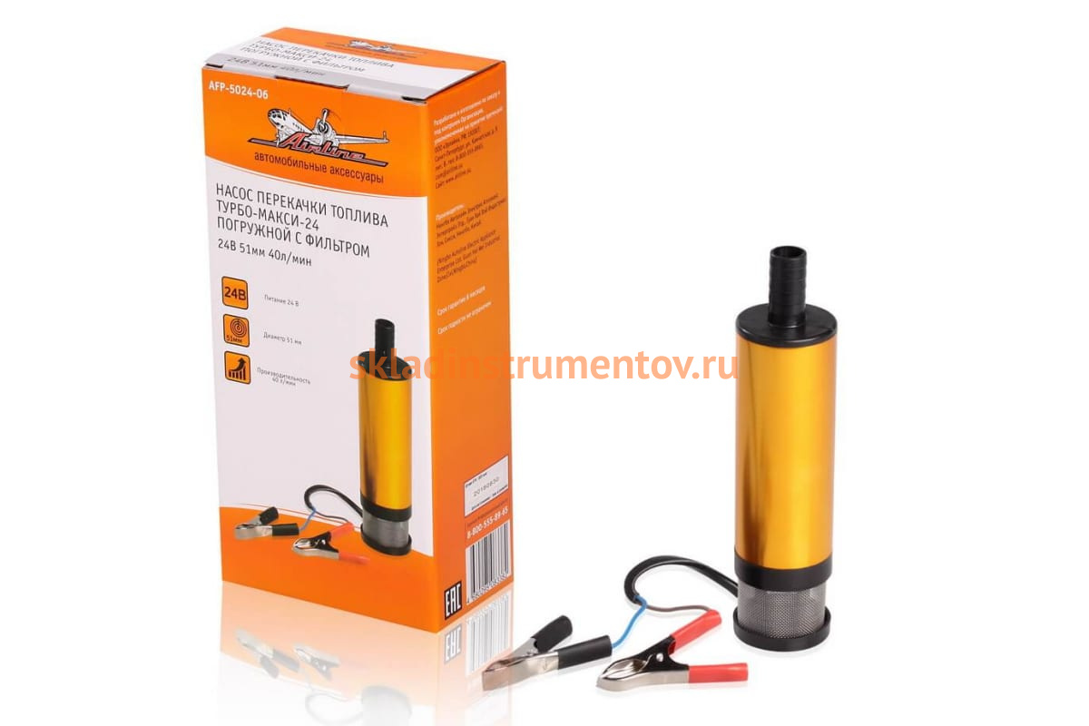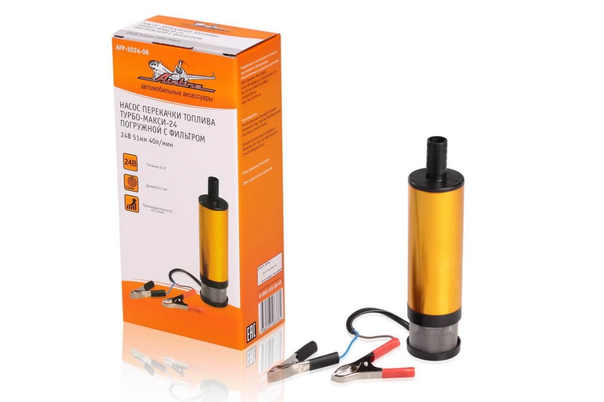 Насос перекачки топлива Airline ТУРБО-МАКСИ-24 погружной AFP-5024-06 выполнен из прочных материалов, благодаря чему имеет долгий срок службы. Содержит в себе коллекторный электродвигатель постоянного тока и центробежный насос. Встроенный сетчатый фильтр защитит от попадания посторонних частиц.