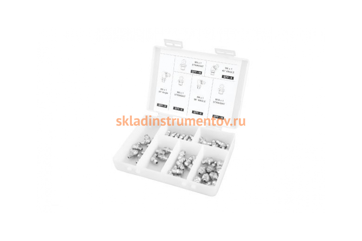 —Комплект прпесс-масленок в пластиковой коробке 110 шт М6 М8 М10 прямой и 90 градусов GROZ GR43971—