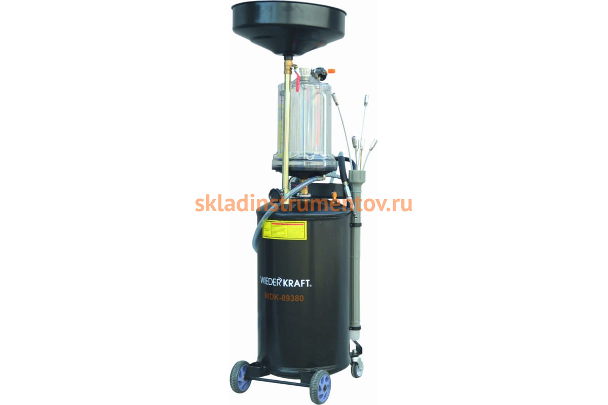 Установка с предкамерой WIEDERKRAFT WDK-89380 предназначена для сбора отработанного масла с автомобилей при помощи вентури-вакуумной вытяжной системы. Установка проста в использовании. Благодаря вакуумному насосу слив происходит через воронку в сливной бочок объемом 80 литров. Лоток для мелких деталей не позволит потеряться колпачку.