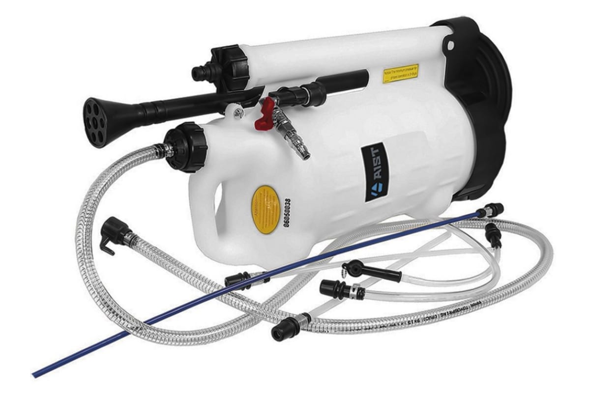 Пневматический экстрактор технических жидкостей с набором адапторов AIST 00-00009133 используется для удаления масла из автомобильных узлов - двигателя, КПП. Процесс откачки осуществляется без необходимости демонтажа сливной пробки. Емкость модели вмещает 10 литров технической жидкости. Подключение компрессора или пневмосистемы осуществляется через быстроразъемный штуцер азиатского типа размером 1/4" ("папа").