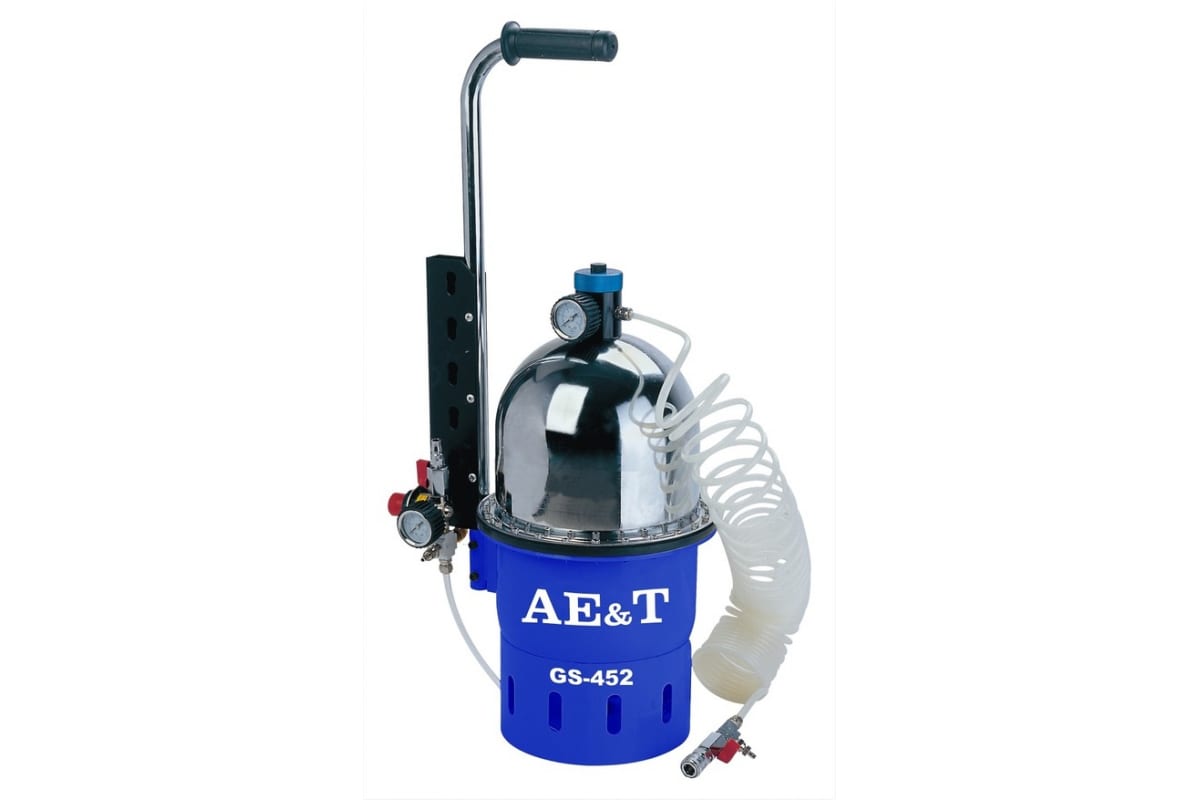 Приспособление для замены тормозной жидкости AE&T GS-452 - данная модель подходит для большинства тормозных систем. Металлический резервуар окрашен качественной краской и не подвержен коррозии. Специальная рукоятка и небольшие габариты позволяют с легкостью переносить устройство по рабочей зоне, что обеспечивает удобство и комфорт. Установка гарантирует высокое качество и эффективность работы.