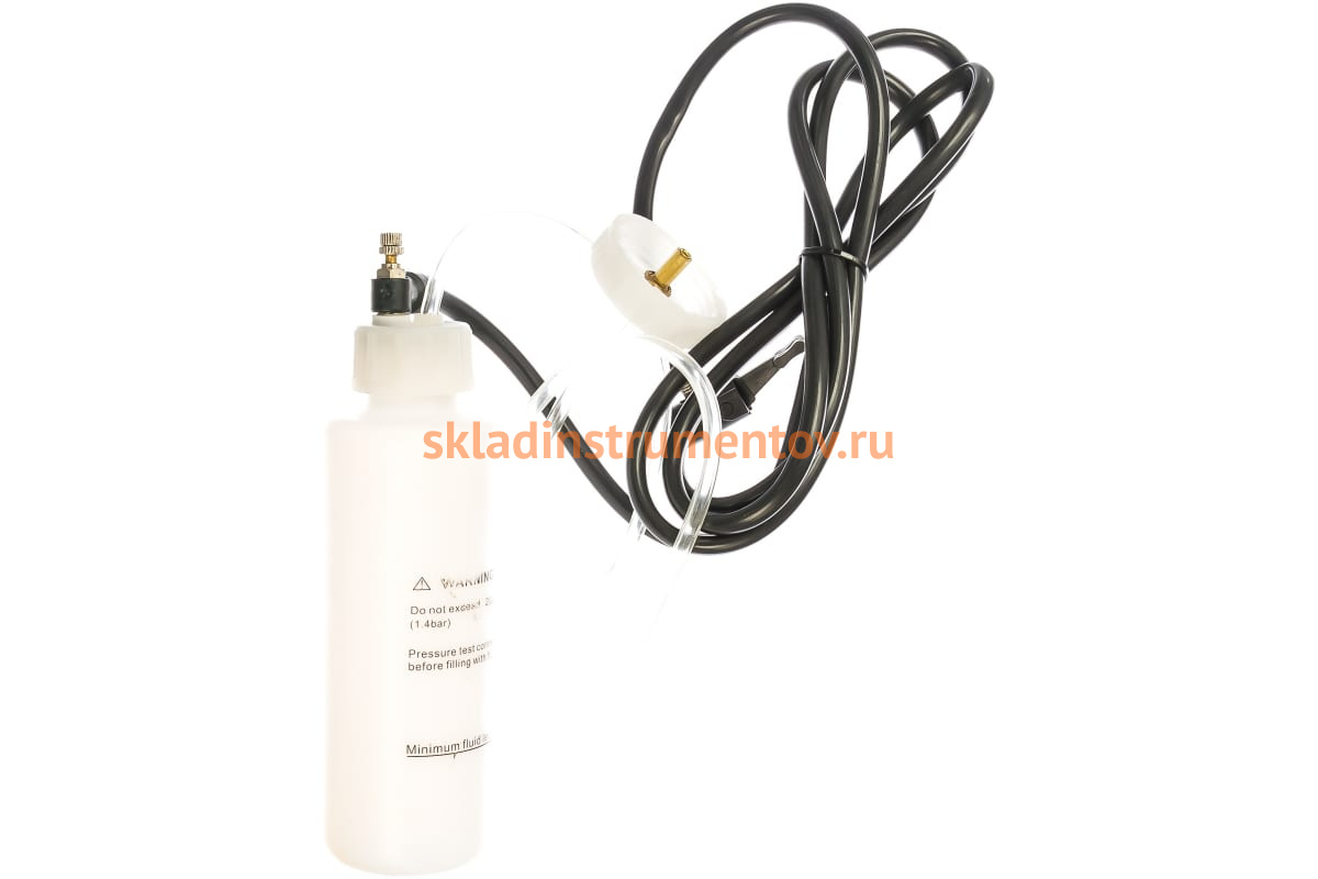 Емкость с адаптером устанавливается на бачок гидравлического привода, шланг с коннектором подключается к ниппелю колеса.