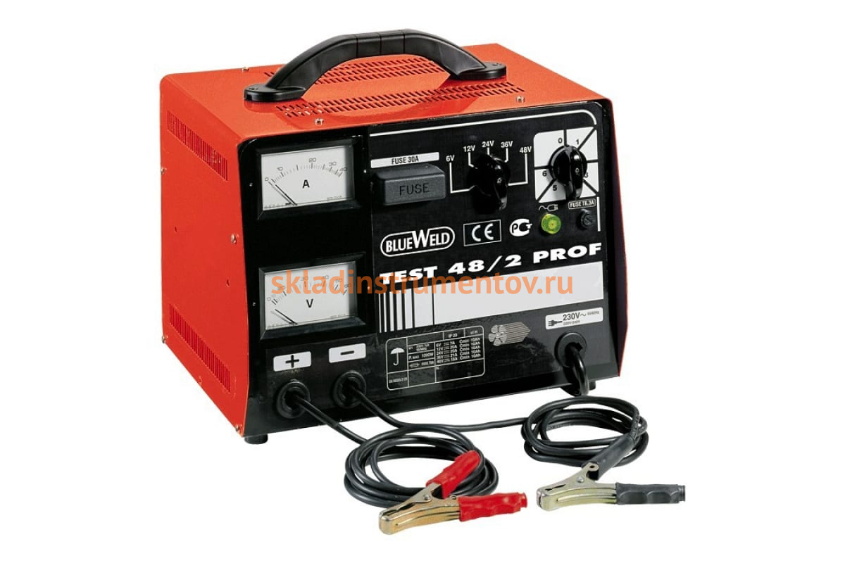 Зарядное устройство BlueWeld Test 48/2 Prof предназначено для профессионального использования. Данная модель используется для зарядки всех типов свинцовых аккумуляторов на 6/12/24/36/48В. Возможна зарядка сразу нескольких аккумуляторов одновременно, для этого нужно нужно их параллельно соединить. Воздушное охлаждение предотвращает возможность перегрева.