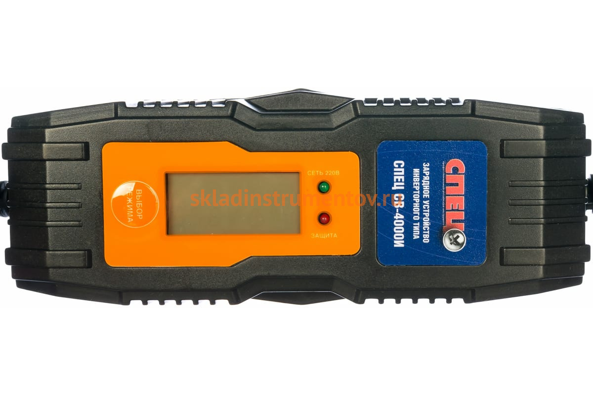 Зарядное устройство инверторного типа СПЕЦ-СВ4000-И - универсальное компактное приспособление, которое способно восстановить полностью или частично разряженную батарею. Устройство позволяет обслуживать гелевые, свинцово-кислотные, а также щелочные аккумуляторы. Модель имеет встроенную защиту от неправильной полярности и от короткого замыкания. Агрегат отлично подойдет для любого автовладельца.