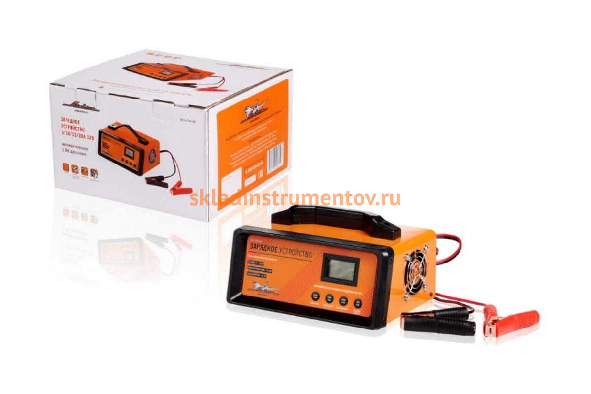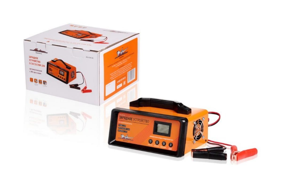 Автоматическое импульсное зарядное устройство с LCD дисплеем 5/10/15/20А 12В Airline ACH-20AU-09 служит для восстановления заряда автомобильных аккумуляторов. Модель успешно используется при температуре окружающей среды от -30 до +40 градусов. Устройство управляется при помощи микропроцессора. Режим работы отображается на ЖК-экране с подсветкой. Допускается выбор типа аккумуляторной батареи до начала ее зарядки.