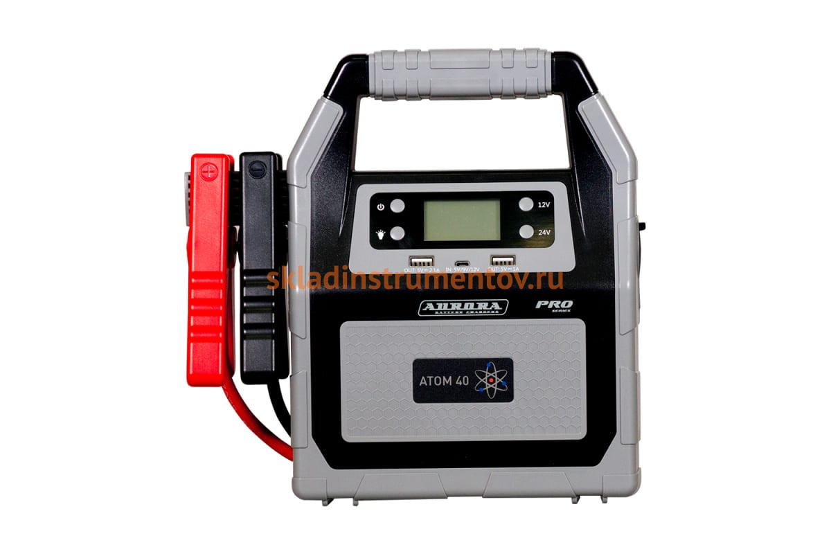 Пусковое устройство 12/24 В Aurora ATOM 40 20362 - удобное и практичное устройство, которое упрощает процесс запуска двигателя при севшем аккумуляторе. При наличии данного ПУ не потребуется никаких других устройств. Большая емкость аккумулятора позволяет свободно запускать даже мощные грузовики - она составляет 40 000 мА/ч. Для полной зарядки устройства требуется не более семи часов. Небольшой вес - определенное преимущество для оборудования такой мощности. В корпусе расположен LED фонарь, который обладает 4 режимами работы, в том числе и режимом SOS. Стабильная работа гарантируется при температуре от -20 до +60 градусов. Для контроля работы имеется индикатор зарядки. Простоту переноски обеспечивает удобная рукоятка. Клеммы при транспортировке расположены на специально выделенных для этого местах. Для быстрой зарядки через USB имеется сетевой адаптер.