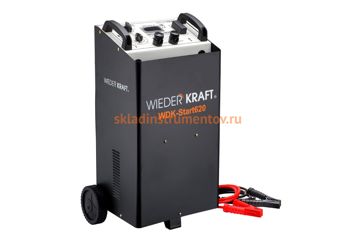 Пуско-зарядное устройство (трансформаторное, для аккумуляторов до 1000Ач) WIEDERKRAFT WDK-Start620 редставляет собой простой в обслуживании и управлении аппарат для работы с аккумуляторами транспортных средств вплоть до грузовиков. Контроль заряда осуществляется при помощи встроенного амперметра. Благодаря удобному расположению элементов управления и наличию проводов в комплекте устройство можно свободно эксплуатировать сразу же после приобретения. ПЗУ подключается к обычной домашней сети.
