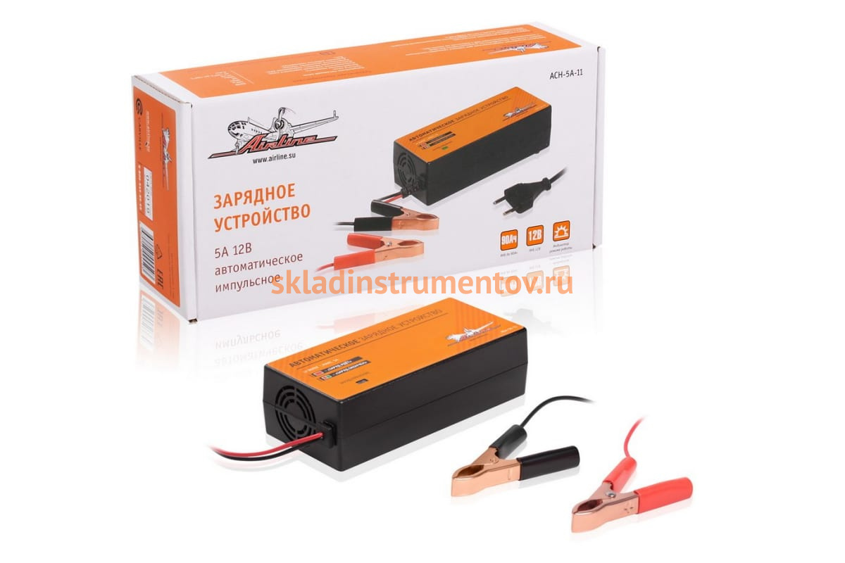 Автоматическое зарядное устройство 5А, 12В, импульсное Airline ACH-5A-11 незаменимый помощник любого автомобилиста. Подходит для обслуживания свинцово-кислотных аккумуляторов (кроме гелевых GEL) с напряжением 12 В.