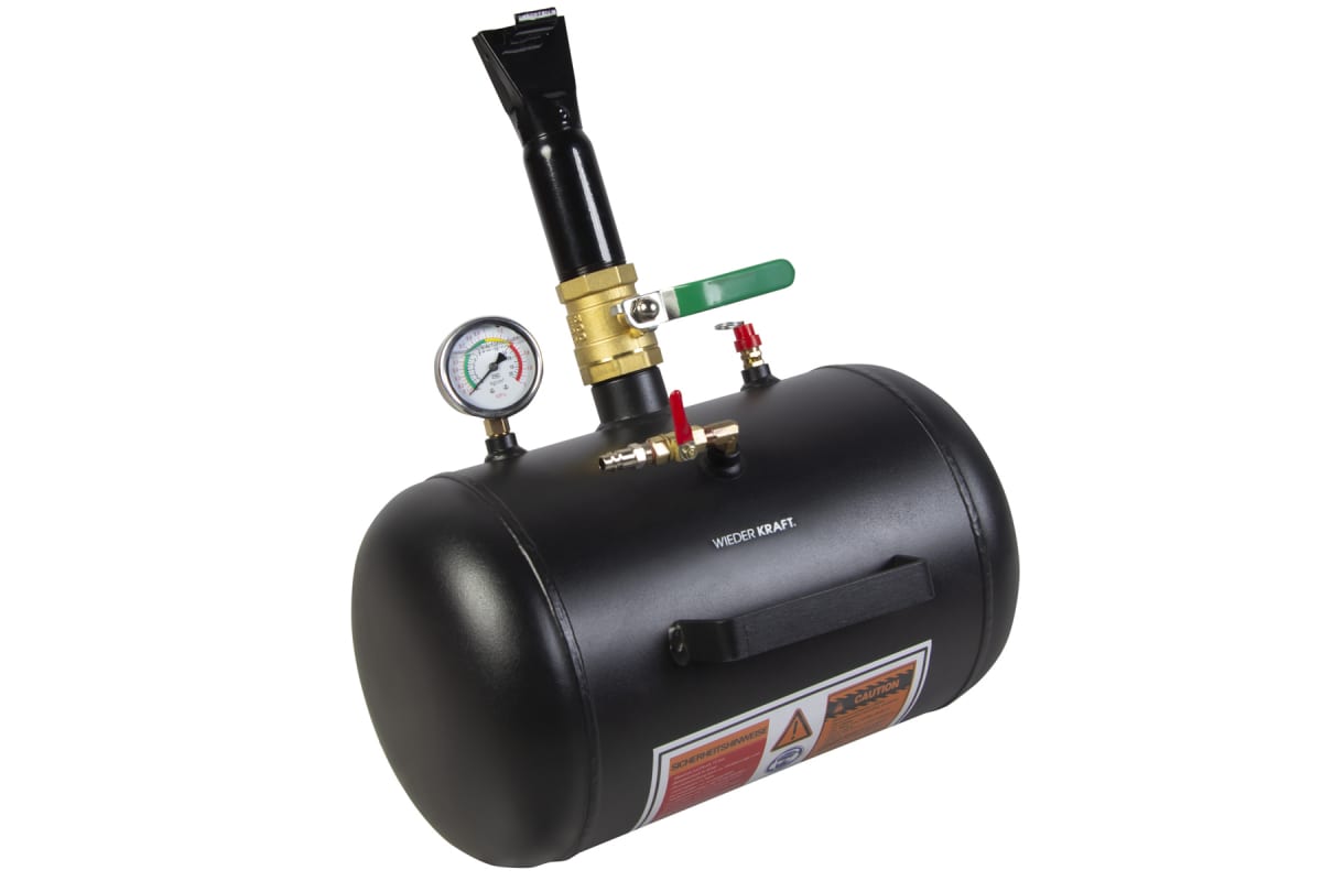 Ресивер-бустер (19 л, 7-12 бар) WIEDERKRAFT WDK-80018 используется для накачивания бескамерных шин, а также низкпрофильной, жесткой или слежавшейся резины. Предварительное накачивание ресивера осуществляется путем подключения к компрессору или иному источнику сжатого воздуха. Размеры изделия составляют 440 х 410 х 300 мм.