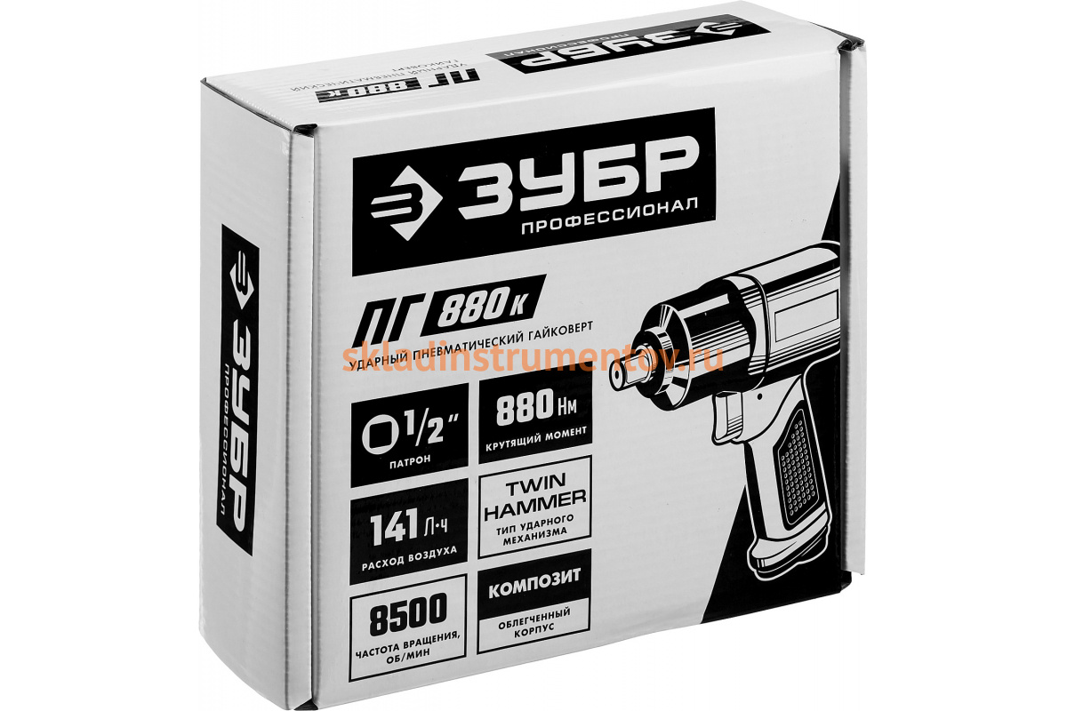 Ударный пневматический гайковерт ЗУБР ПГ-880к 1/2", 880 Нм 64250 применяется при сборочных и разборочных операциях, установке автомобильных колес и т.д. Является незаменимым инструментом в автомастерской или на мебельном производстве.