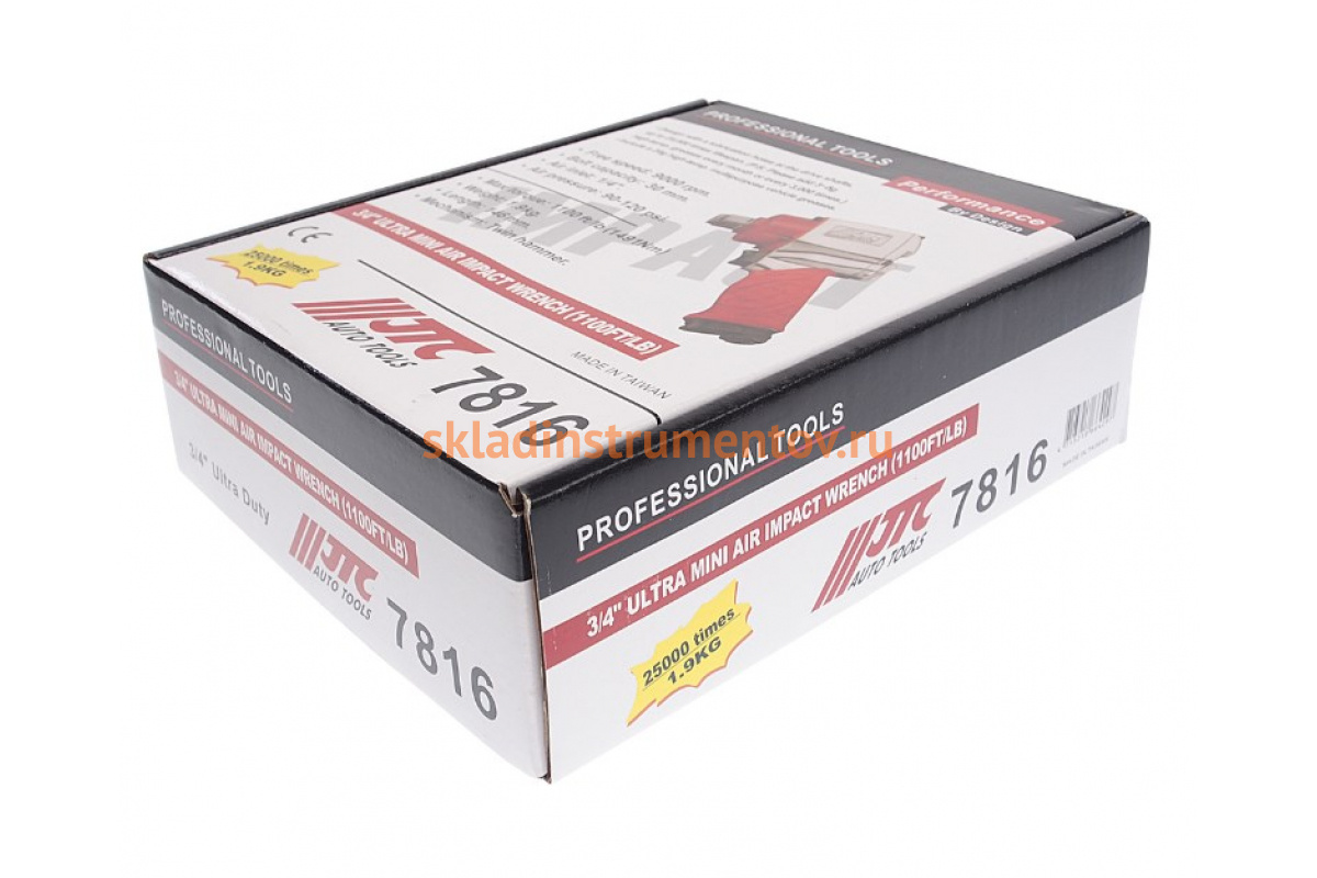 Ударный пневмогайковерт JTC 3/4 1491 Nm 90-120PSI JTС-7816 имеет компактные габариты и малый вес, что позволяет работать инструментом длительное время без усталости.