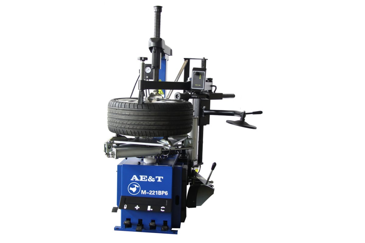 Шиномонтажный автоматический станок с правой рукой и наддувом AE&T 220В M-221BP6 за счет пневматического привода и функции "третья рука"(быстрый отжим низкопрофильных шин) существенно ускоряет процесс технического обслуживания легковых автомобилей в автомастерских. В конструкции устройства предусмотрены специальные отверстия для крепления основания станка, что увеличивает его устойчивость на поверхности. Оборудование работает от электрической сети напряжением 220 В и частотой 50 Гц. Максимальный диаметр колеса, с которым может работать станок, - 1040 мм, а максимальная ширина - 355 мм. Мощность станка - 0.55 кВт.