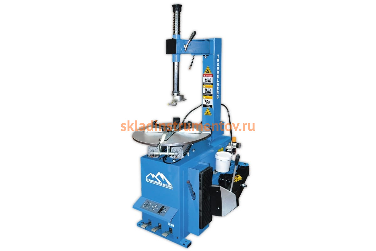 Полуавтоматический шиномонтажный станок Trommelberg 1810E 3P предназначается для работы с колесами, максимальный диаметр которых составляет 965 мм, а ширина находится в диапазоне от 3 до 10 дюймов. Поворотный стол с четырех кулачковым самоцентрирующимся механизмом вращается со скоростью 6 оборотов минуту и обеспечивает высокую производительность выполнения операций. Возможность позиционирования монтажной головки по горизонтали и вертикали относительно края диска гарантирует точность работы. Поворотная консоль позволяет установить стенд вплотную к стене, что особенно актуально в условиях ограниченного пространства цеха или мастерской. Специальные отверстия в основании модели служат для надежного крепления и исключают возможность опрокидывания оборудования во время работы. Агрегат работает от трехфазной сети в диапазоне от 380 до 400 В, частотой 50 Гц.