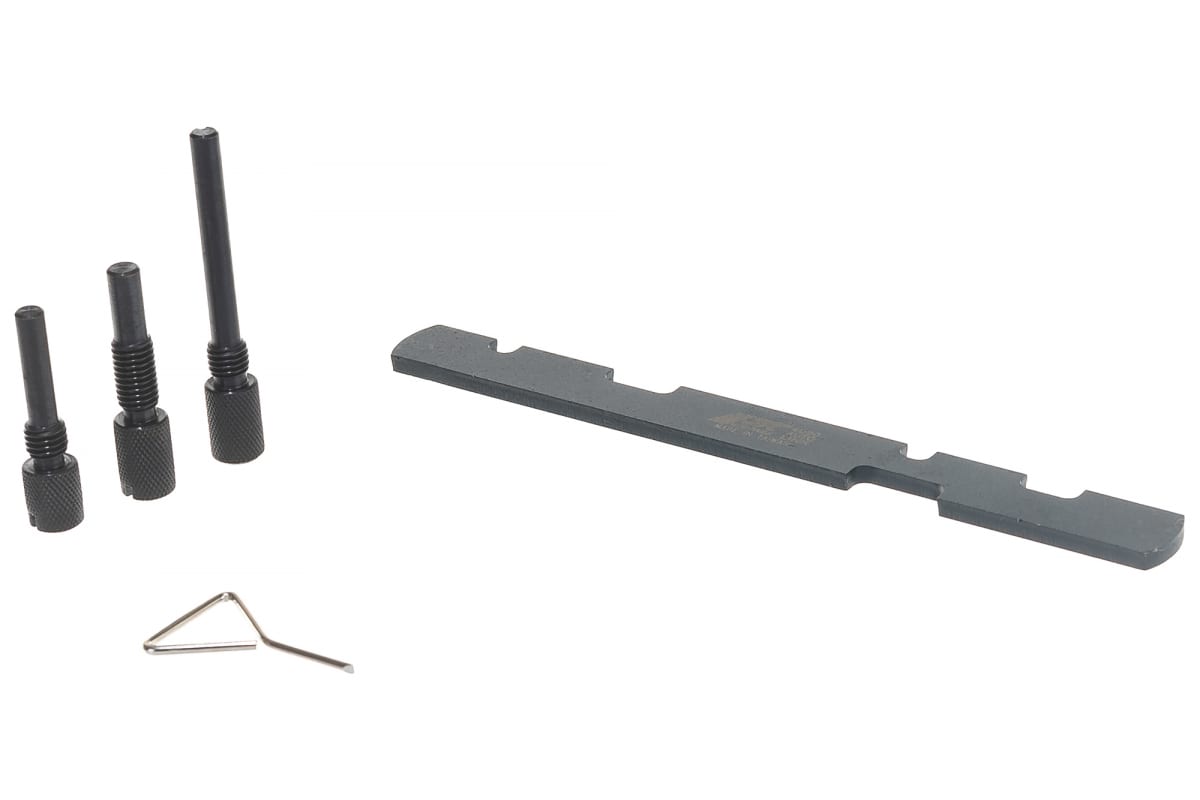 Набор фиксаторов коленвала и распредвала FORD, MAZDA JTC 4090 - комплект специнструментов для проверки и установки фаз газораспределения бензиновых и дизельных двигателей в автомобилях Форд (Ford), Мазда (Mazda). В набор входят болты для фиксации коленвала и пластина для фиксации распредвала. Габариты в упаковке: 290х90х20 мм.