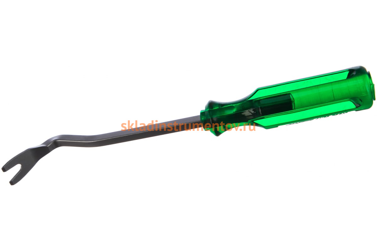 Съемник скоб внутренней обшивки двери JTC 2511 - это элементарное в использовании приспособление, которое поможет быстро и аккуратно демонтировать пистоны обшивки дверей большинства марок автомобилей. Для совершения данной операции нужно осуществить всего лишь три действия - завести под дверь, вставить в скобу, поддеть. Инструмент обладает малыми габаритами - 225х30х25 мм, и минимальным весом - всего 102 гр., поэтому его удобно хранить и транспортировать.