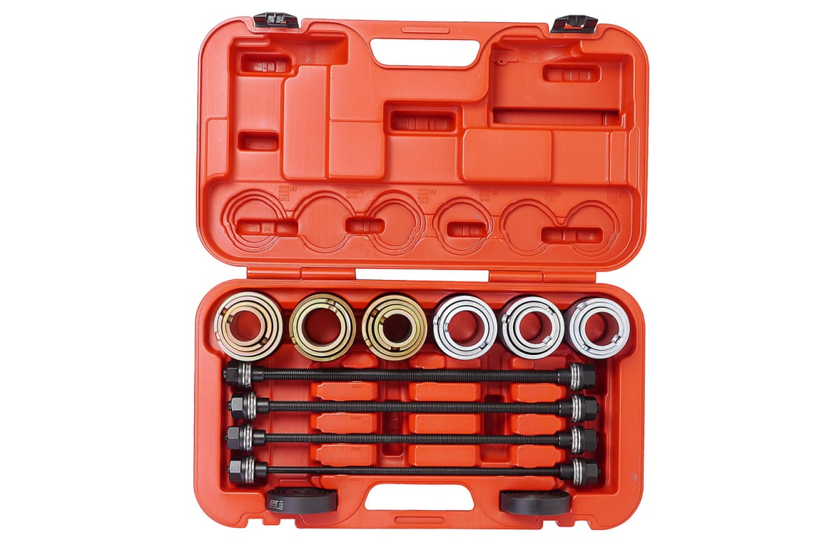 Набор для снятия и установки втулок универсальный JTC 1-4091 - это инструмент для обслуживания автомобиля. Комплект из 11 предметов предназначен для монтажа и демонтажа подшипников, втулок, сайлентблоков, а также подшипников с резиновой втулкой. Изделия изготовлены из высокопрочной стали. Поставляется набор в удобном переносном кейсе, который облегчает хранение и транспортировку.
