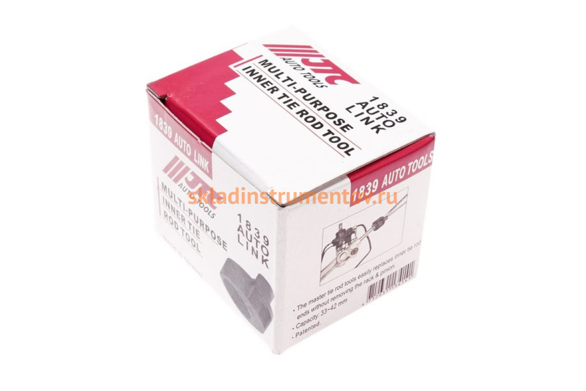 Универсальный съемник шарнира рулевой рейки JTC 1839 активно применяется на станциях технического обслуживания, а также в частных мастерских по ремонту автомобилей. С помощью данного изделия можно быстро и аккуратно осуществить демонтаж шаровой части рулевой тяги транспорта. Такая операция может потребоваться при увеличении или невозможности настройки люфта рулевого колеса. Модель обладает большим рабочим диапазоном - захват от 33 до 42 мм. Инструмент является уникальной разработкой JTC и защищен международным патентом.
