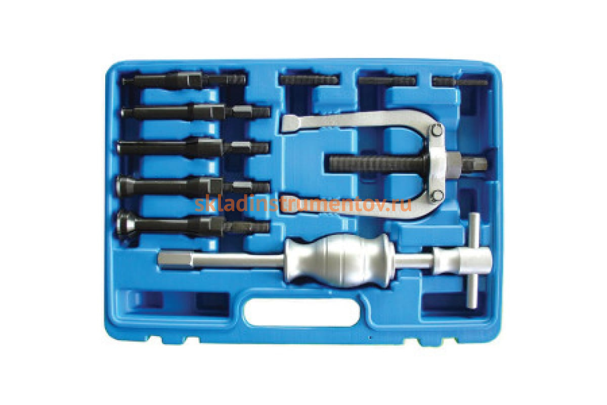 Набор: упорный съемник внутренних подшипников FORCE 910T1 представляет собой комплект насадок диаметром от 8 до 32 мм и обратный молоток. Инструмент используют в автосервисах и ремонтных мастерских для быстрого демонтажа подшипников с внутренним креплением.