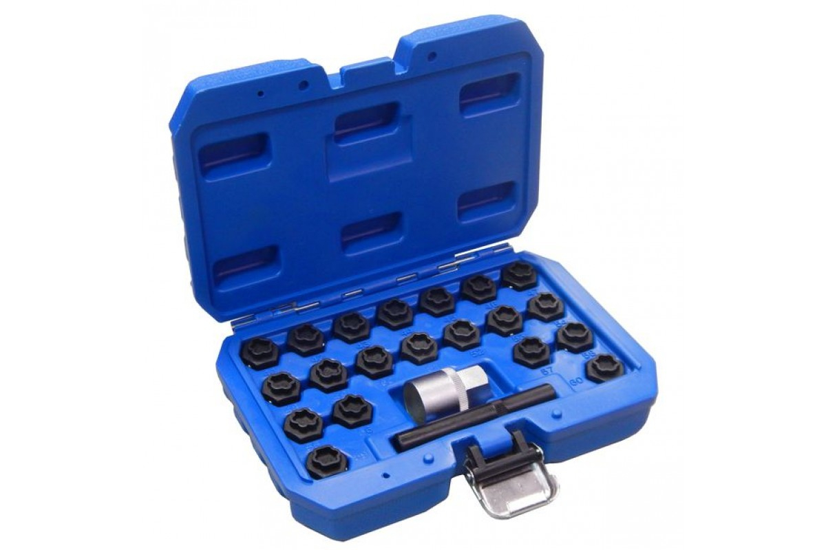 Набор насадок для секретных колесных болтов BMW, 22 предметов ROCKFORCE RF-302822 включает в себя большое количество головок со стандартными размерами, что расширяет область применения насадок.