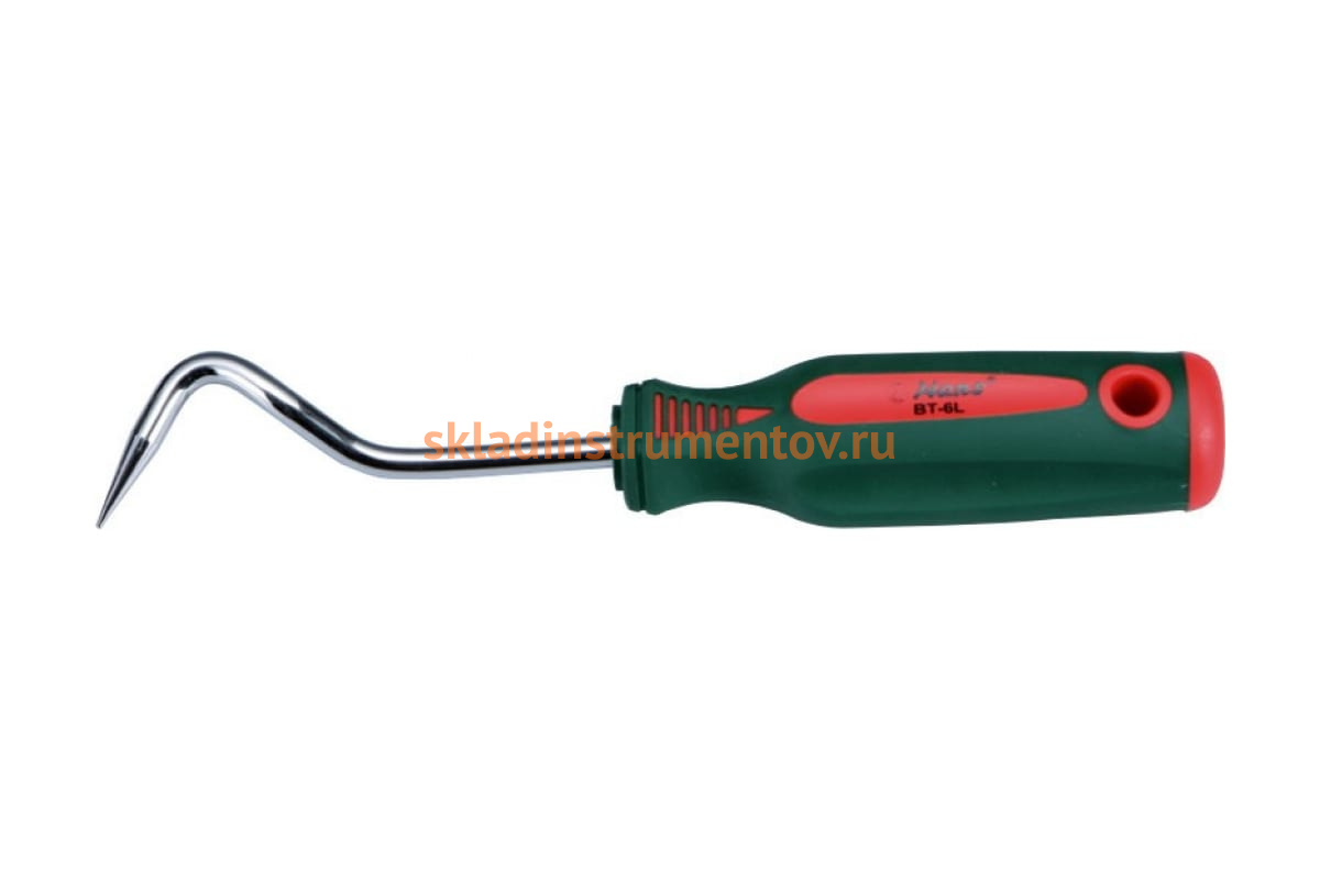 Рукоятка с L-образным крючком Hans BT-6L имеет прочную стальную рабочую часть с заостренным и изогнутым наконечником. Для удобного и надежного обхвата без проскальзывания предусмотрена двухкомпонентная рукоятка. В хвостовой части ручки предусмотрено отверстие для возможности подвесного хранения.