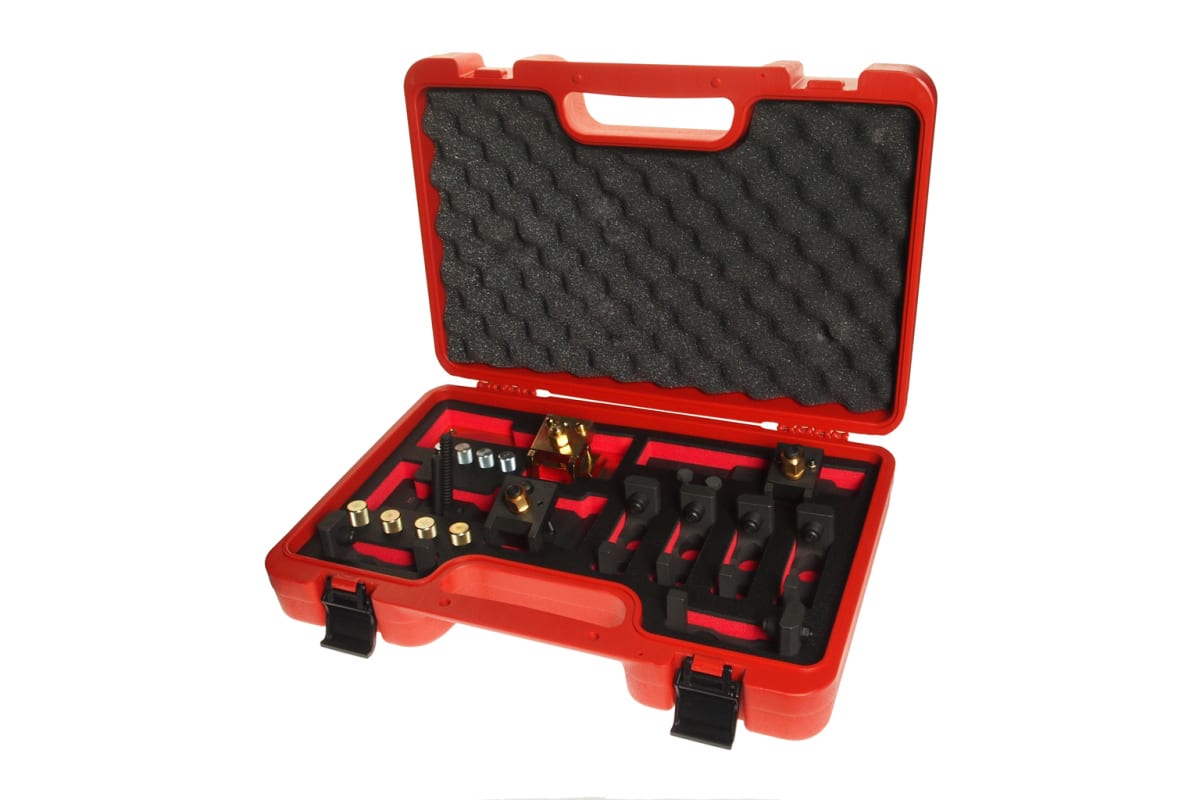 Держатель распределительного вала выпускных клапанов JTC-4447 - это комплект приспособлений, которые применяются с автомобилями BMW N51, N52, N53, N54, N54T, N55. Держатели предназначены для фиксации выпускного распредвала. Все изделия набора выполнены из прочных материалов. Комплект поставляется в пластиковом кейсе.