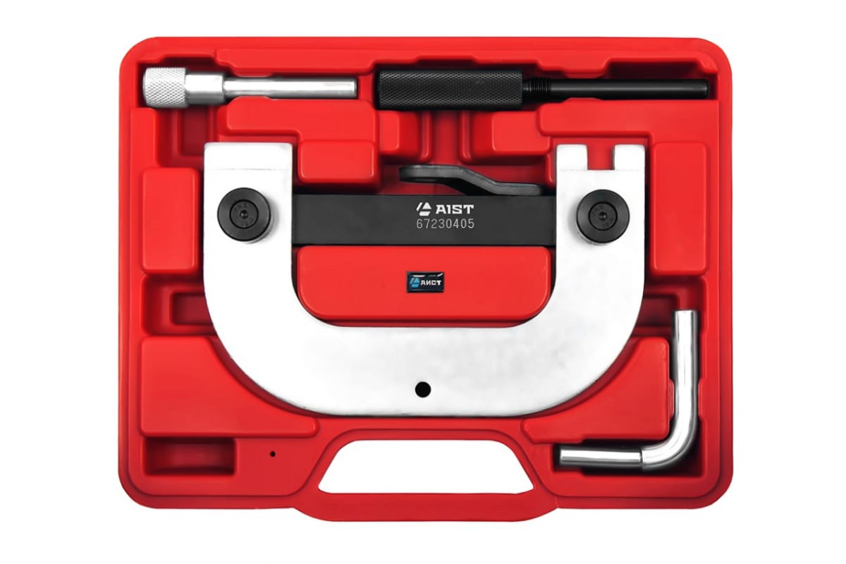 Набор инструмента для фиксации распредвала на RENAULT 1.4 1.6. 16V AIST 67230405 - специализированный инструмент для закрепления распределительного вала в нужном положении. В набор входят пять приспособлений из прочного и износостойкого материала. Комплект применяется для бензиновых и дизельных двигателей.