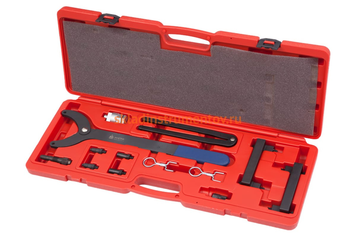 Набор фиксаторов распредвала/коленвала VAG FSI МАСТАК 103-21111C для удобства хранения и транспортировки поставляется в небольшом кейсе, который оснащен отдельными ячейками под каждое из изделий, крепкими замками-защелками, а также рукояткой для переноски. Данный комплект используется во время ремонта и обслуживания цепных двигателей нового поколения - V6, V8 и V10.