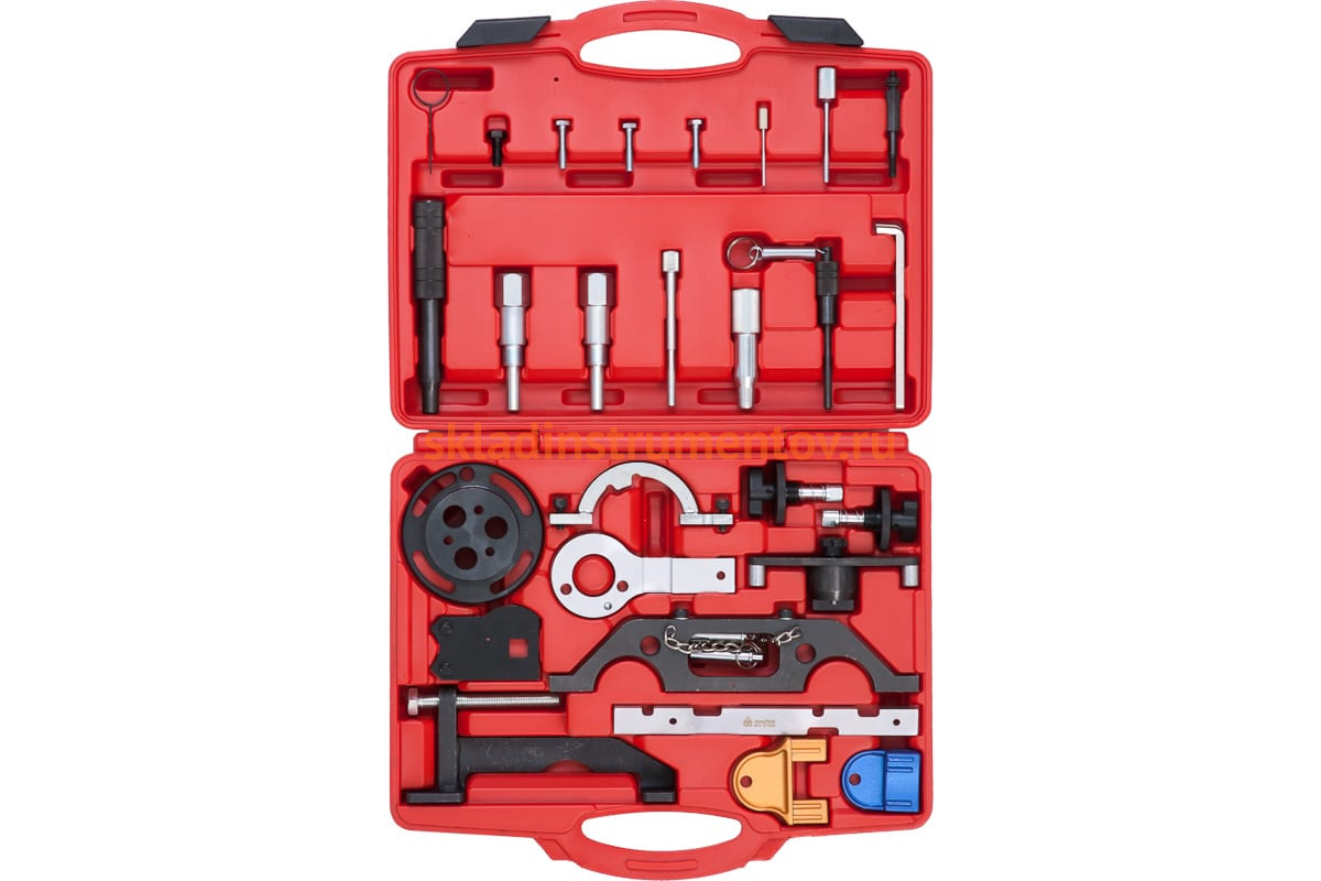 Набор фиксаторов распредвала/коленвала OPEL, 26шт МАСТАК 103-21026C позволяет производить профессиональный ремонт двигателей у автомобилей марки Opel. В комплекте представлены: фиксатор маховика, фиксатор коленчатого вала, фиксатор распределительного вала, фиксатор вала насоса высокого давления (применимо к дизельным моторам), съемник шкива коленвала, натяжитель ремня и подробные таблицы использования данных приспособлений. Набор подходит для двигателей с бензиновым впрыском: 1.0L 12V, 1.2L 16V (начиная с 1997 года) 1.4L / 1.6L / 1.8L / 2.0L/ 2.2L 16V (начиная с 1995 года) - модели автомобилей: Agila, Astra, Corsa, Frontera, Meriva, Omega, Signum, Sintra, Speedster, Tigra, Vectra, Zafira, а также двигателей с дизельным впрыском: 1.3L CDTi 16V, 1.9L CDTi, 2.0L DTi, 2.2L DTi - модели автомобилей: Agila, Astra, Combo-C, Corsa, Frontera, Omega, Signum, Sintra, Tigra, Vectra, Zafira.