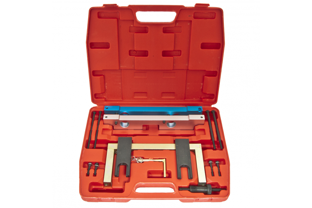 Набор фиксаторов для обслуживания двигателей BMW 12 предметов, в кейсе ЭВРИКА ER-86935 применяется в автосервисах и станциях техобслуживания в качестве вспомогательного инструмента для быстрого и эффективного ремонта двигателя.