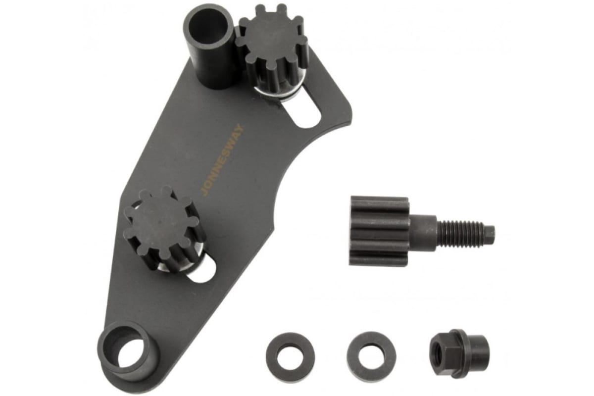 Приспособление для фиксации приводов распределительных валов двигателей Jonnesway AL010187 RENAULT 49596 разработано для двигателей объемом 1.8/2.0 литра при откручивании болтов зубчатых колес. Инструмент комплектуется специальными шестернями, затяжной гайкой и парой шайб. Изделие применяется для автомобилей: RENAULT Megane II, Laguna II и Scenic II Turbo 2.0 (02 → 08) годов выпуска; двигателей: бензиновые 1.8 / 2.0 / 2.0 16v, 2.0 Turbo. Коды двигателей: все модификации F4P, F4R, F4RT.