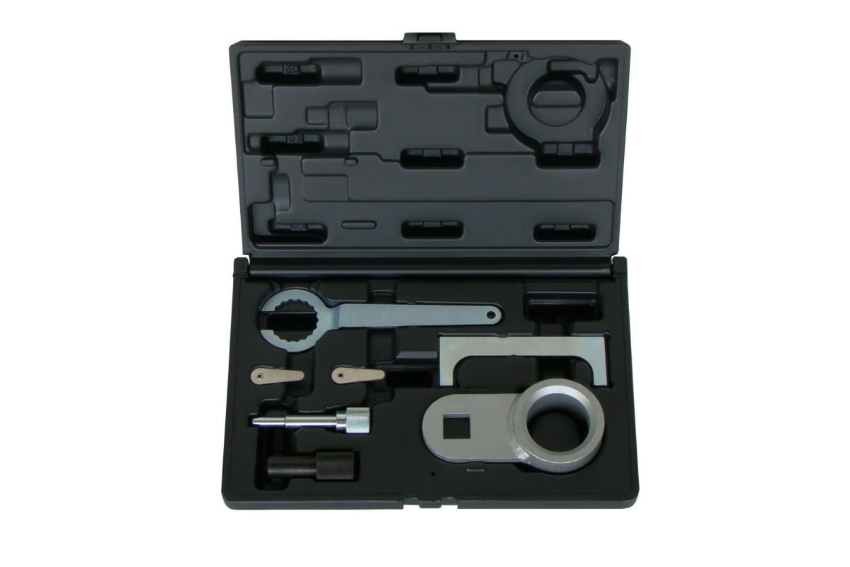 Набор для временной фиксации валов двигателей VW/LT,D,SDI,TDI при ремонтных работах 6 предметов FORCE 906G6 состоит из различных фиксаторов и стопоров, которые обеспечивают неподвижность распредвала и зубчатых колес.
