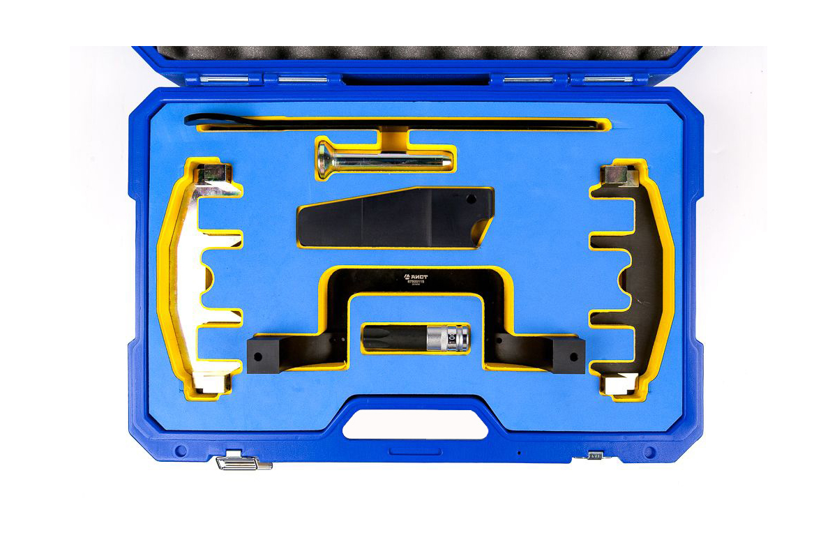 Полный набор фиксаторов ГРМ AIST MERCEDES-BENZ M271 67500115 00-00020762 включает в себя полный спектр приспособлений для установки ГРМ моторов Мерседес M271 (1,6/1,8L), в том числе приспособление для фиксации цепи ГРМ и инструмент для фиксации зубчатого колеса распредвала.